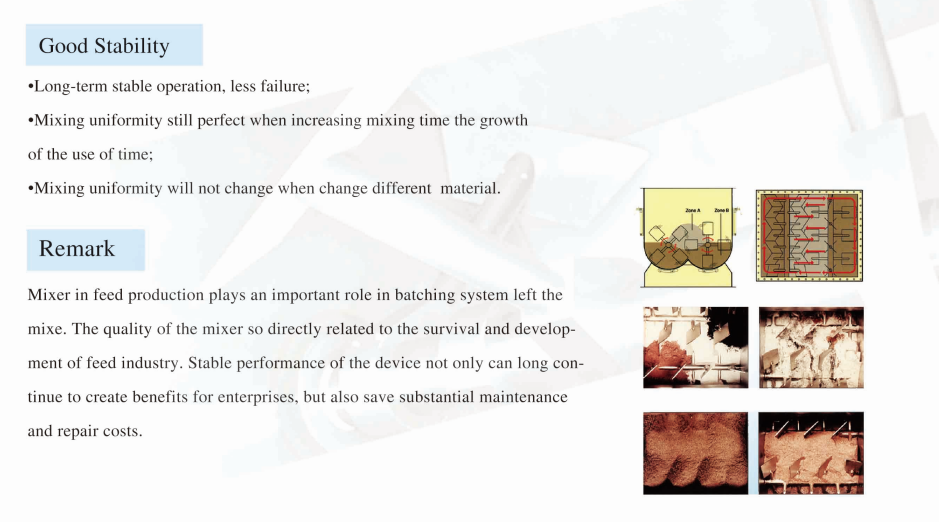 SSHJ series mixer is widely used to mix the materials in the shape of powder, granule, flake, piece, and sticky materials in the industries of feed grain,food chemicals, medicine pesticide,etc.