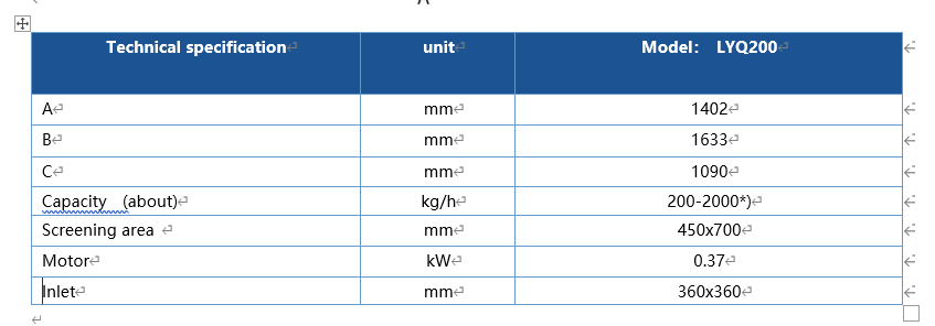 Changes to the screen is done through the top inspection door. The separator will be delivered with a set of screens with a mesh of 0.7 to 1.0 mm and supplied as a complete unit, incl. electric motor and replaceable screen.